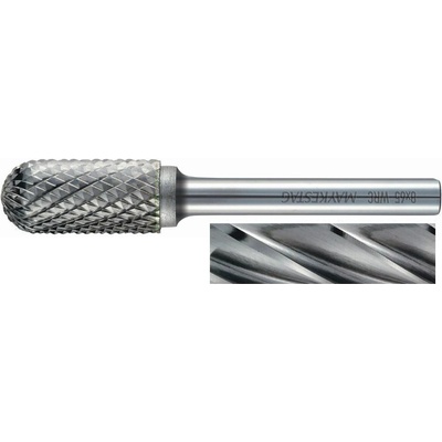 Karbidová soudkově kulatá technická fréza typu WRC s řezným profilem dle DIN MY, 6 mm válcovou stopkou, průměrem pracovní části 12 mm, délkou pracovní části 25 mm a celkovou...