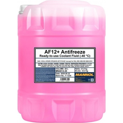 MANNOL 4012 Antifreeze AF12+ (- 40°C) je Karboxylovaný (organický - OAT Organic Acid Technology) roztok připravený k použití, určený pro celoroční použití ve všech moderních...