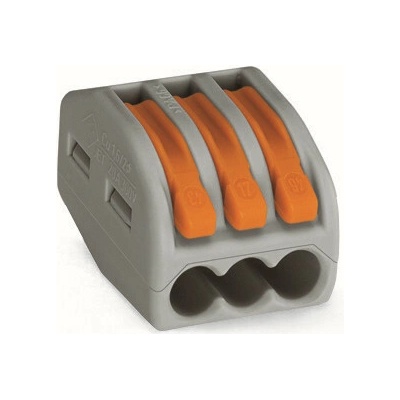 3-vodičové svorky s páčkou pro snadnou montáž a demontáž kabelů.Všechny 3 vstupy jsou ve spojce propojeny jako jeden spoj. (neslouží k propojení 3 nezávislých propojení) Technická specifikace: zatížení 250V/32Aprůměr kabelu 0,75 - 2,5 mm2