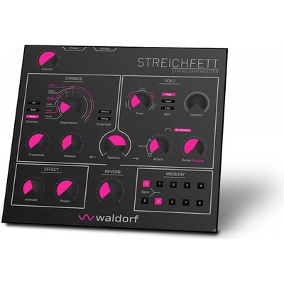 Waldorf Streichfett je polyfonní modul, který v sobě spojuje zvuky strunných syntezátorů ze 70-tých a 80-tých let. Je vybaven dvěma zvukovými enginy a zabudovanou efektovou sekcí. - Plně polyfonní string sekce s presety Viloin, Viola, Cello, Brass, Organ a Choir -...