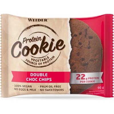 Weider Protein Cookie: doplněk stravy.„Cookie“ koláčky vyhovující požadavkům veganské stravy. S bílkovinami a kousky čokolády Weider Protein Cookie, Double Choc Chips, 90 g ...