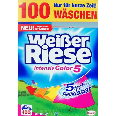 Výrobce: Henkel Prádlo: barevné Množství: 100 pracích dávek Hmotnost: 5,5 kg Prací teploty: od 20 °C do 60 °C Dovoz z Německa WEISSER RIESE Color Pulver mit...