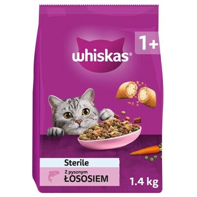 Granule Whiskas Sterile 1+ jsou lahodné plněné granule vyhovující potřebám kastrovaných koček. Podporují zdraví močových cest a obsahují méně kalorií.