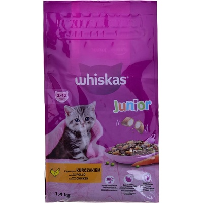 Krmivo Whiskas Junior obsahuje veškeré živiny, které kotě potřebuje v prvním roce života. Chutné granule s mléčnou náplní, které si koťátko oblíbí a bude snadno kousat.
