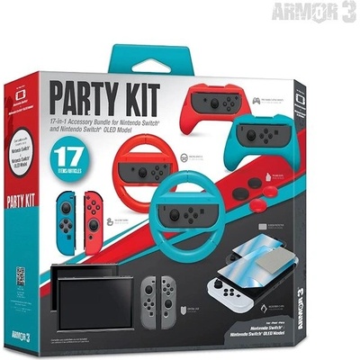 Dosáhněte vítězství se sadou Armor3 Party Kit pro Nintendo Switch, která obsahuje pár silikonových skinů, pár rukojetí na ovladače, sadu závodních volantů pro ovladače, gumičky...