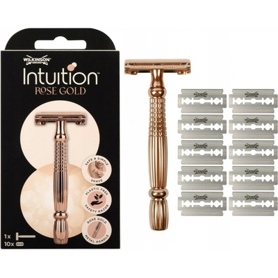 WILKINSON SWORD Intuition Double Edge Rose Gold Razor Dámský kovový strojek Classic + žiletky 10 ks Holicí strojek Wilkinson Sword Intuition Rose Gold Razor zajistí vaší pokožce dokonale hladké oholení.