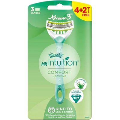WILKINSON SWORD sword MY Intuition comfort sensitive 4 ks Jednorázová holítka Wilkinson Sword Xtreme 3 Beauty Sensitive se 3 flexibilními břity vám zajistí přesné a pohodlné oholení, zatímco gelový pásek obohacený o pečující přísady se postará o vaši citlivou pokožku.