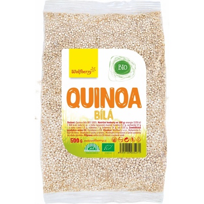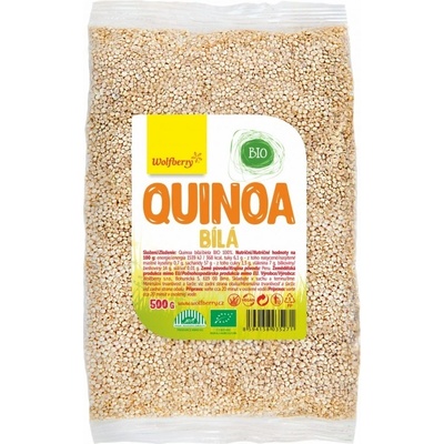 Quinoa bílá BIO 500 g Wolfberry* Lehce stravitelná a přirozeně bezlepková potravina. Hodí se do polévek, kaší, salátů, nebo jako příloha k masu.