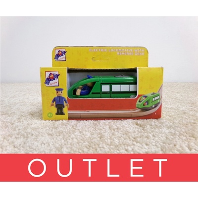 Příslušenství k vláčkodráze - lokomotiva se strojvedoucím. Přepínač lokomotivy s předním a zadním pohonem je umístěný na její střeše. Součástí tohoto výrobku je i strojvedoucí...