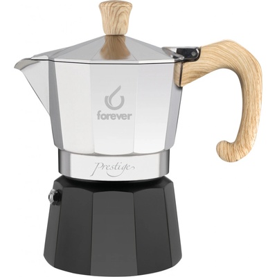 Detail produktu Hliníková moka konvička Forever Představujeme vám designový kousek, který kombinuje tradiční vzhled černé hliníkové konvičky se stříbrným poklopem a úchyty z...