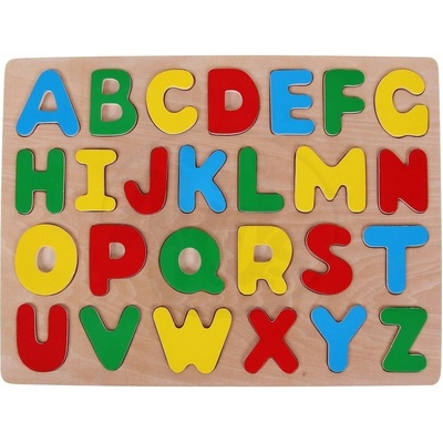 Dřevěná barevná vkládačka bez úchytek pro děti pro první seznámení s písmenky. Jednotlivé dílky (písmena) se umisťují do vyfrézovaných obrysů na dřevěnou desku. Doporučeno...