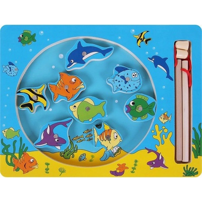 Kdo uloví více rybek? Uchop dřevěný proutek s magnetem zavěšeným na provázku do ruky. Na magnet se pokus chytit rybičky. V této magnetické hře děti soutěží, kdo naloví...