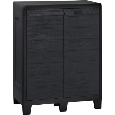 Zahradní skříň se 2 dveřmi, 7 nohami a 2 policemi s různě nastavitelnou výškou a dřevěným vzhledem. Vhodná pro použití v exteriéru. Certifikát TÜV-GS. Max. nosnost na polici:...