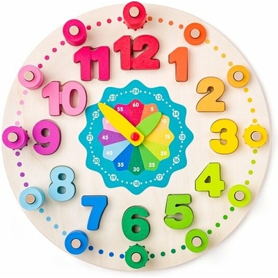 Dřevěné hodiny WOODY Didaktické hodiny Didaktická hračka, se kterou se dítě naučí vnímat hodiny jako pomůcku pro měření času Naučí se poznávat číslice a díky barevným kroužkům i...