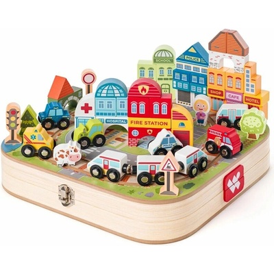 Dráhu lze postavit pokaždé jinak a možno kombinovat i s jinými stavebnicemi na trhu. Otevřete kouzelný svět železnic v dřevěném kufříku! Po jeho rozložení vznikne na obou...