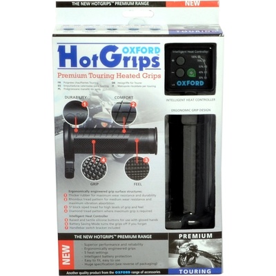 Vyhřívané rukojeti na motorku OXFORD HotGrips Premium Touring Prémiové vyhřívané gripy s aplikací pro řidítka motocyklu o průměru 22 mm Možnost úpravy délky gripu v rozsahu od...