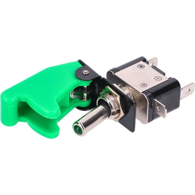 Univerzální přepínač s modrým LED podsvícením a zeleným ochranným krytem. Technické údaje: 12V 35A Připojení pomocí plochých konektorů o rozměru 6,3 mm Rozměry pouzdra přepínače...
