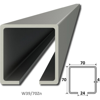 Plotová zinkovaná lamela, Z profil, 23x40x20x1,5 mm s vyztuženou hranou 10 mm, délka 3m