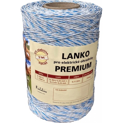 Lanko PREMIUM pro el. ohradník, 3x0,20 mm Niro + 3x0,25 mm CuSn, 500 m, bílo-modrá