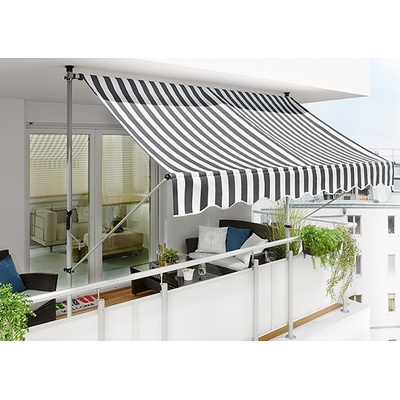 Rozpěrná markýza Sunfun s blokovými pruhy v šedo-bílé barvě je vyrobena z vysoce kvalitního impregnovaného polyesteru a chrání před slunečním zářením na terase nebo balkonu....