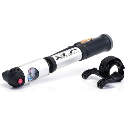 XLC hliníková funkční pumpa 2 v 1 PU-A04, pro duše jízdních kol a odpružené vidlice, poskytuje podle volby velký objem nebo vyoký tlak, s manometrem, včetně šlahounku pro...