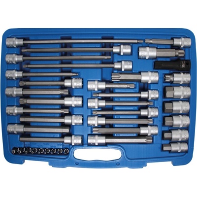 Sada zástrčných hlavic, 36ks 36-dílná sada zástrčných hlavic 1/2" SPINE (XZN) / IMBUS / RIBE / TORX v plastovém kufříku obsahuje tyto hlavice:SPINE (XZN) 8 ks - dl. 55 mm: M5-M6-M8-M9-M10-M12-M14-M16 IMBUS 9 ks - dl. 55 mm: 5-6-7-8-10-12-14-17-19 mm RIBE 9 ks - dl. 55...