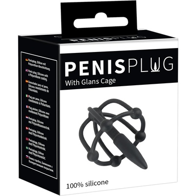Penisplug - silikonová klec na žalud s kolíkem do močové trubice (černá) Klec na žalud pro extrémní sexuální zážitek pro muže a stimulující zážitek z kulové masáže pro partnerku! Vyrobeno výhradně z pružného silikonu, s kroužkem a klecí uzavírající žalud, jakož i...