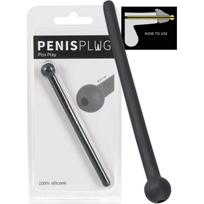 Penis Plug Piss Play black - dutý černý dilatátor, který se vkládá do močové trubice. Flexibilní. 11,8 cm, hloubka zasunutí 10,7 cm. průměr 0,7 až 1,3 cm. Materiál: silikon bez ftalátů dle normy REACH v EU. Značka You2Toys.