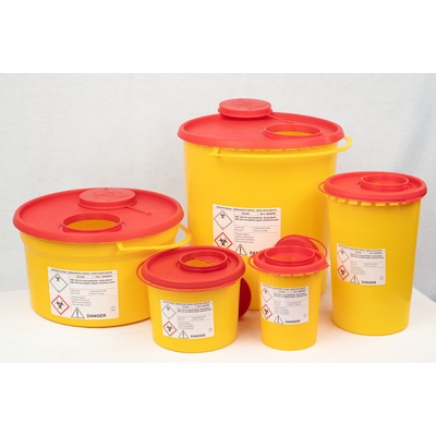 Plastová jednorázová nádoba určená pro bezpečný sběr kontaminovaného (biologického) odpadu ve zdravotnickém prostředí – zejména ostré předměty jako jehly, injekční stříkačky, skalpely, skleněné střepy apod. Nádoba má pevné uzavíratelné víko, které zamezuje náhodnému...