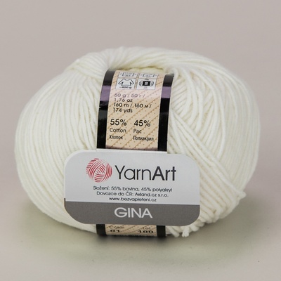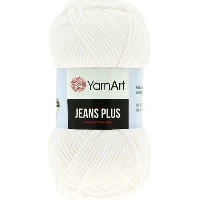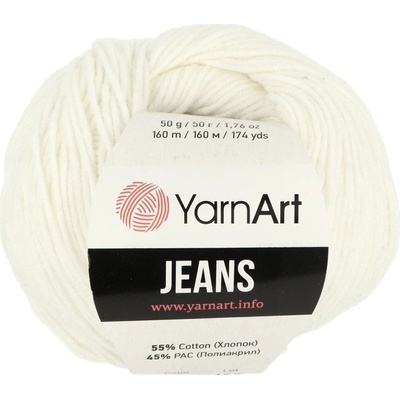 Směsová pletací / háčkovací příze (55% bavlna a 45% polyakryl) v jednobarevné bílé barvě nazývaná také jako příze Jeans. Je vhodná na různé druhy pletení a háčkování a díky její všestrannosti se dá využít téměř na cokoliv. Doporučená velikost jehlic a háčku je 3,5 mm.
