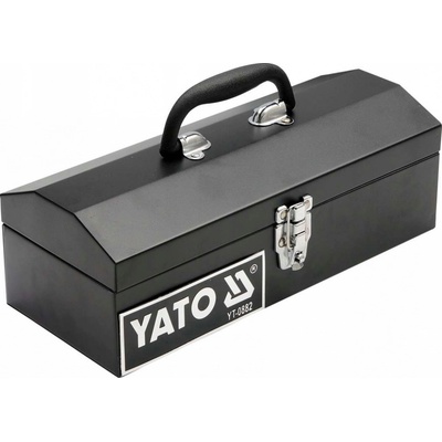 Yato Box na nářadí 360x150x115mm, YT-0882 Kovový box na uložení nářadí s madlem pro snadné přenášení. Box rozměrů 360 x 150 x 110 mm s váhou 1,4 kg je vyroben z ocelového plechu. Zavírání kufru je řešeno sponou, kterou je možné uzamknout pomocí zámečku.