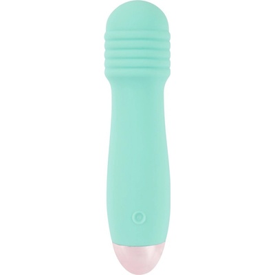 Sympatický vibrátor You2Toys Cuties Mini v zelené barvě z hebkého silikonu. Má rozšířenou hlavičku se stimulačními vroubky a 7 vibračních a pulzačních režimů.