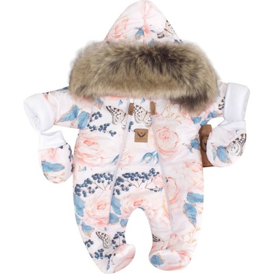 Z&Z Zimní kombinéza s dvojitým zipem kapucí a kožešinou rukavičky Angel růžičky