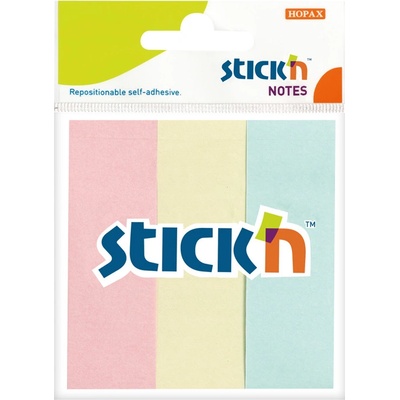 Samolepicí záložky | 76x25 mm | Stick'n by Hopax 21128 ️ Praktické samolepicí papírové záložky Stick’n by Hopax 21128 ve třech pastelových barvách (modrá, růžová, žlutá) o...