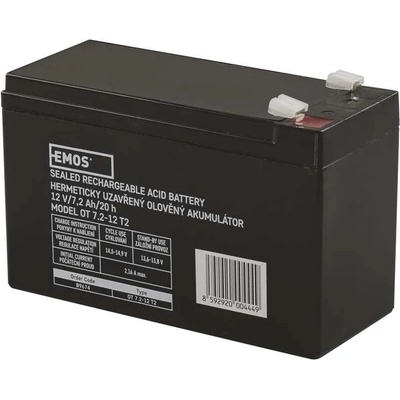 Emos Bezúdržbový olověný akumulátor 12 V/7,2 Ah B9674, faston 6,3 mm, černý Akumulátor EMOS je vhodný jako náhradní baterie pro záložní zdroje UPS, RBC kity,dětské vozítka...