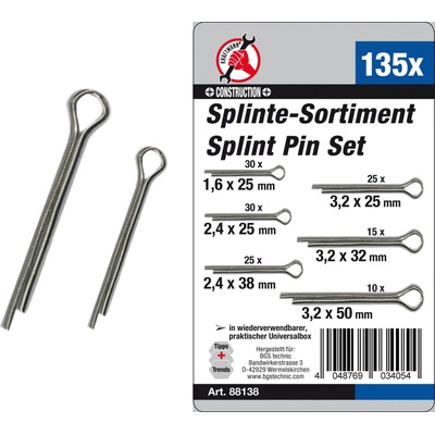 Závlačky 1,6-2,4-3,2 mm, různé délky, sortiment 135 dílů - BGS 88138