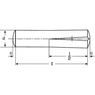 Kolík kuželový DIN 1B průměr kolíku = průměr na jeho užší straně další rozměry na poptávku