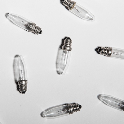 Svíčkové čiré žárovky pro vánoční elektrické osvětlovací řetězy (10 objímek). Objednací číslo: 374025000 EAN: 8595209901132 ILCOS: IBB/C-3-20-E10-13 Typ: Incandescent lamps...