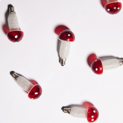 Vánoční žárovka HOUBIČKA červená E10 20V hříbek 1ksNáhradní žárovka MUCHOMŮRKA E-10 20V 0,1A tvaru hříbek 1ks s červeným kloboučkem ruční výroby se závitem E-10 je určena pro...