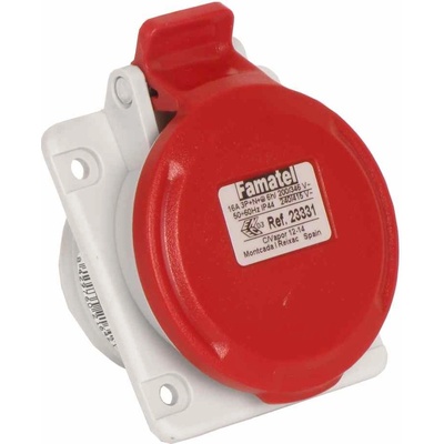 Zásuvka průmyslová 16A 5P 400V iP44 vestavná šikmá. Průmyslové vidlice, průmyslové zásuvky, průmyslové přívodky a průmyslové zástrčky obecně řeší zapojení elektro zařízení na...