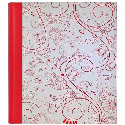 Klasické šité fotoalbum formátu 29x31 cm s červeným květinovým vzorem a hřbetem. Album obsahuje 60 stran (30 listů), mezi kterými je vložen jemný papír pro lepší ochranu nalepených fotografií. Desky s potiskem jsou matně laminované. Vzadu zevnitř alba je obálka na...