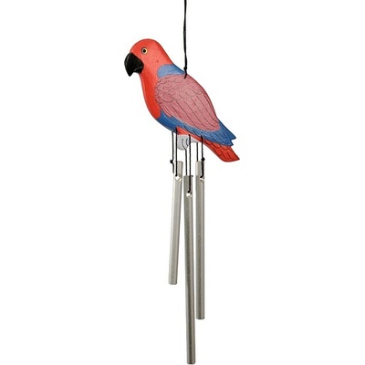 Malá zvonkohra k zavěšení s dřevěným papouškem eklektus různobarvý (eclectus roratus) a třemi kovovými trubičkami (délka 4, 6 a 8 cm) s krásně jemným zvukem. Ručně vyrobená dle...