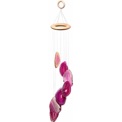Achátová zvonkohra - růžová. Závěsná zvonkohra se sedmi achátovými plátky. Vhodná jako dekorace interiérů i exteriérů. Vydává velmi jemný, harmonický zvuk. Velikost achátových...