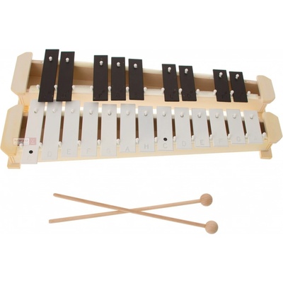 Chromatická zvonkohra, otevřené provedení, ocelové kameny s rozměrem 25 mm, 13 bílých + 9 černých tónů, C3 - A4, v ceně 2x palička, barva přírodní • chromatická zvonkohra pro...
