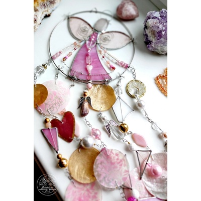 Andělská vitrážová cínovaná zvonkohra je s láskou ručně vyrobené, pracované technikou Tiffany - technika skleněných katedrálních oken. Tělíčko je z opálového ručně vyráběného...