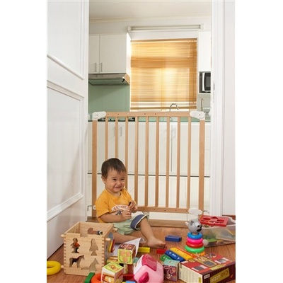Bezpečnostní brána Nukido Bezpečnostní bariéra Nukido jeupevnění vzpěr bez vrtání otvorů - bez poškození stěn nebo dveřních rámů. Brána je vyrobena z kombinace světlého dřeva...
