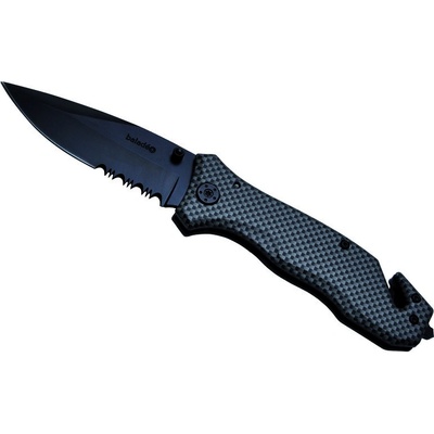 Záchranářský nůž v technickém provedení s rukojetí v imitaci karbonu. Nůž nábízí funkce jako řezač pásů, zubaté ostří, otvírák lahví, karabina, rozbíječ skla a v neposlední...