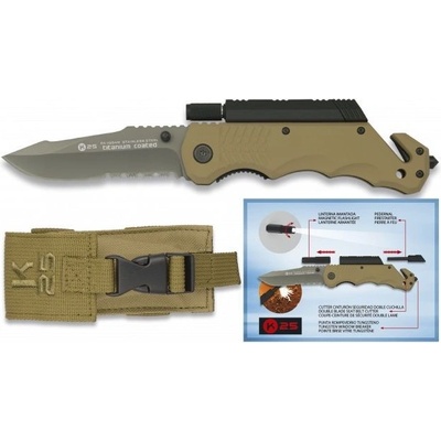Záchranářský nůž K25 s dodatečnou svítilnou a křesadlem. Čepel nerez s titanovou vrstvou.