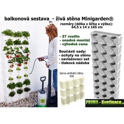 Vertikální balkonová (kuchyňská) zahrada Minigarden bílá 64,5 x 165 cm Nejrychlejší a nejlevnější cesta k vaší vertikální květinové stěně! Pěstujte 27 rostlin na 0,1m2! ...