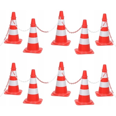 Sada výstražných kuželů s 10m řetězem červená a bílá vidaXL Sada výstražných kuželů s řetězem je úsporný, avšak účinný prostředek k vymezení určitých oblastí. Je vhodná pro...